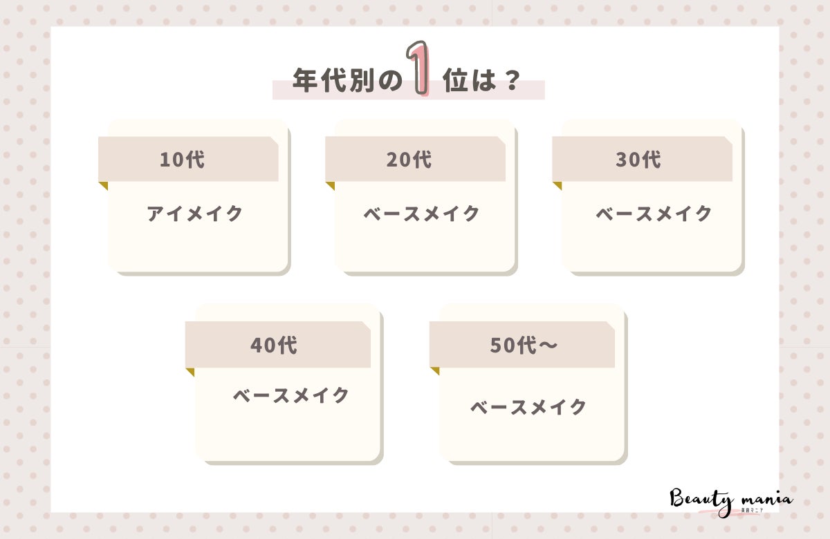・アイメイクや眉毛は擦ったりしない限り落ちないし、リップはマスク着用中のため気にならないが、ベースメイクは目に見えて崩れていることに気づいてしまうため。(30代)