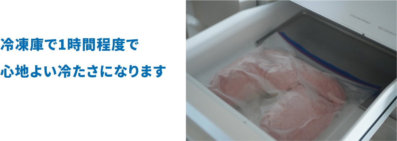 ピントフロートが寝苦しさ解消のために役⽴つのでは?と冷凍庫に⼊れてみたところ、柔らかさそのまま、霜も露もつかない、ひんやり気持ちいい枕ができあがりました。