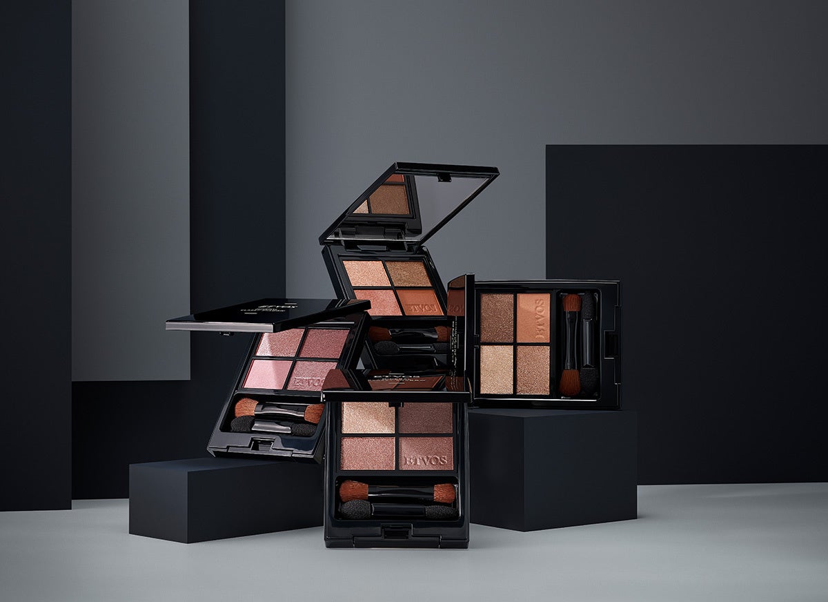 新たにシルバーパールとレッドの偏光パールをブレンドすることで透明感をアップさせ、乾燥によりくすんで暗く見える目元に、繊細な輝きと透明感を与えてくれるパレットとなりました。粒型の大きなパールを多く使うことでふんわりとし、粉含みも改良しています。