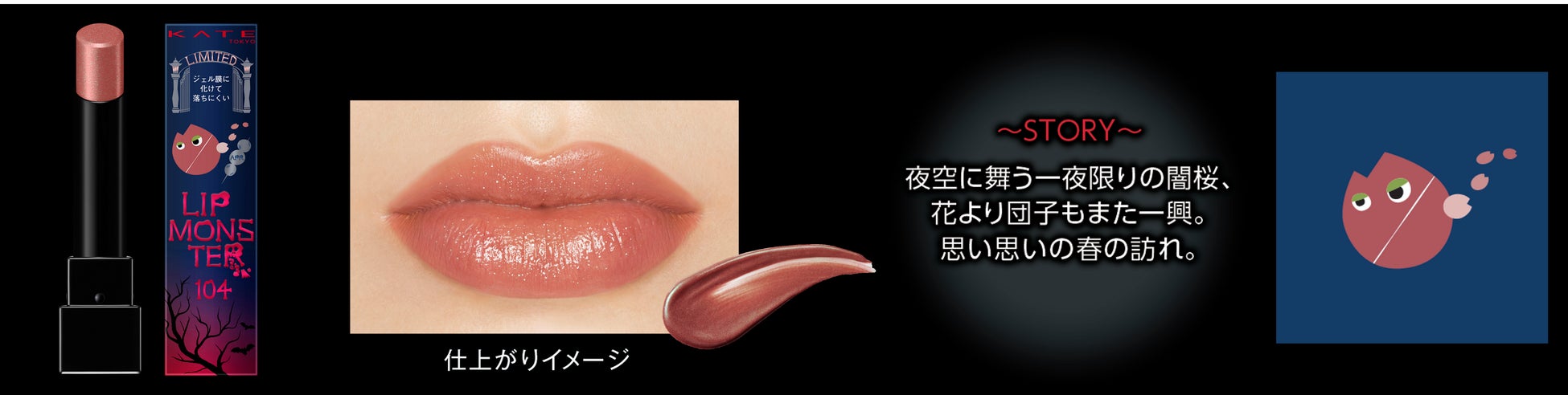 “MYリップモンスター”は、シーズンごとに各月をテーマとするモンスターが3体ずつ登場する限定コレクションです。シーズンは全4回を予定し、合計12体のモンスターが登場。今回発売するseason2は、4月~6月をテーマとするモンスターで、4月「104 桜色のひと時」、5月「105 日没後の情熱」、6月「106 夜雲の涙」をラインナップ。7月~12月をテーマとする個性豊かなモンスターも次々に登場いたします。次回、season3は9月、season4は12月に発売予定です。ぜひ、あなただけのモンスターを探してみて!