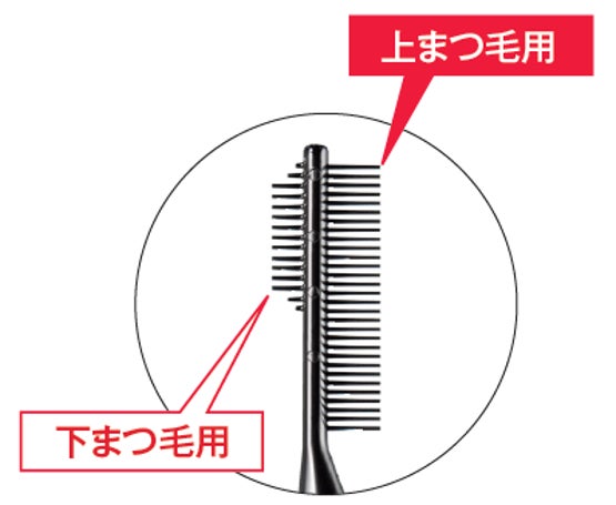 上まつ毛用と下まつ毛用に対応したコームが、まつ毛の隙間に入り込み、