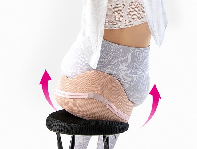 膣の部分をキュッと締め上げる意識で座ることで、自然に骨盤底筋(インナーユニット)に力が入り、体幹力もあがり美しい姿勢が保たれます。1日数分のエクササイズで普段から骨盤底筋への意識づけができるようになります。