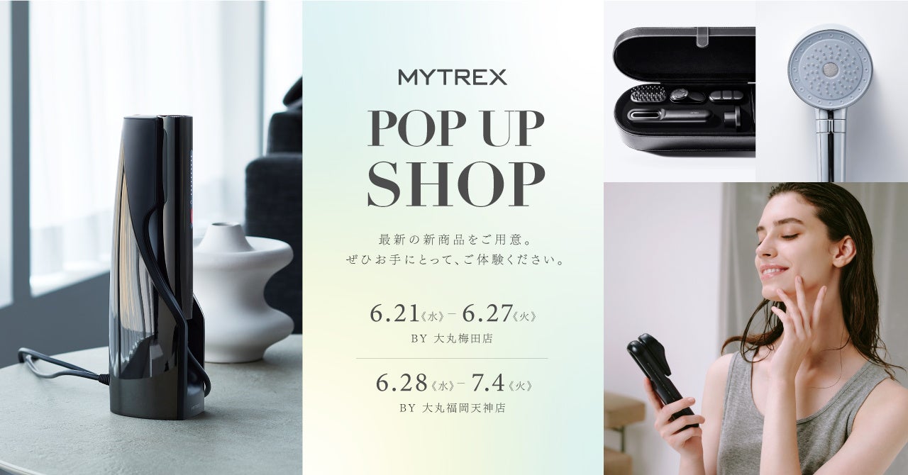 この度出店する大丸梅田店・大丸福岡天神店では、メディアで話題沸騰の次世代光美容器「MYTREX MiRAY」や、頭・顔・体を1台でケアできるトータルリフト美顔器「MYTREX PROVE」などの最新製品から、大人気定番アイテムまで幅広くご用意しております。