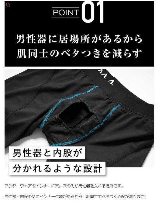 ●男性の陰茎用のスペースがあるから、男性の陰茎周りの蒸れや肌同士のベタツキを抑えます