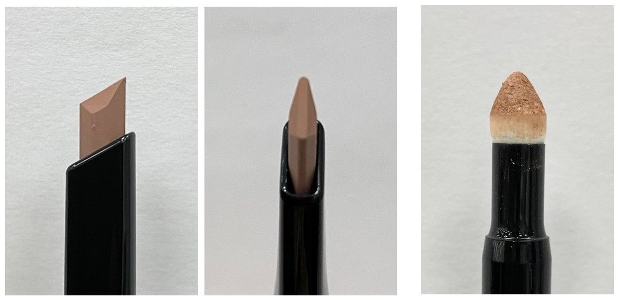 同時に発売する「アイブロウ ソードペンシル&パウダー」は、なめらかな芯と、ふんわりとしたパウダーが両端にセットされたアイテムです。ペンシルの芯には、なぎなた形状を採用したことで、繊細にも太くも描くことができ、細い面で1本1本毛を描き足すように描いたり、広い面で隙間を埋めるように描いたりすることで、立体的な眉に仕上げることができます。パウダーには、先端に向けて細くなる形状のチップを採用、広い面も狭い面もパウダーを塗布しやすい仕様としました。色展開は、「ナチュラルブラウン」「ベージュアッシュ」「ピンクアッシュ」に加え、限定色として「ニュアンスグレー」をラインナップしています。