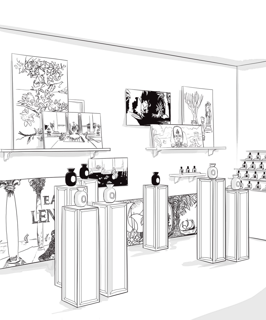 Diptyqueが表現するパリの街並みは、まるで詩的な建築家が描くスケッチのようにモノクロで表現され、