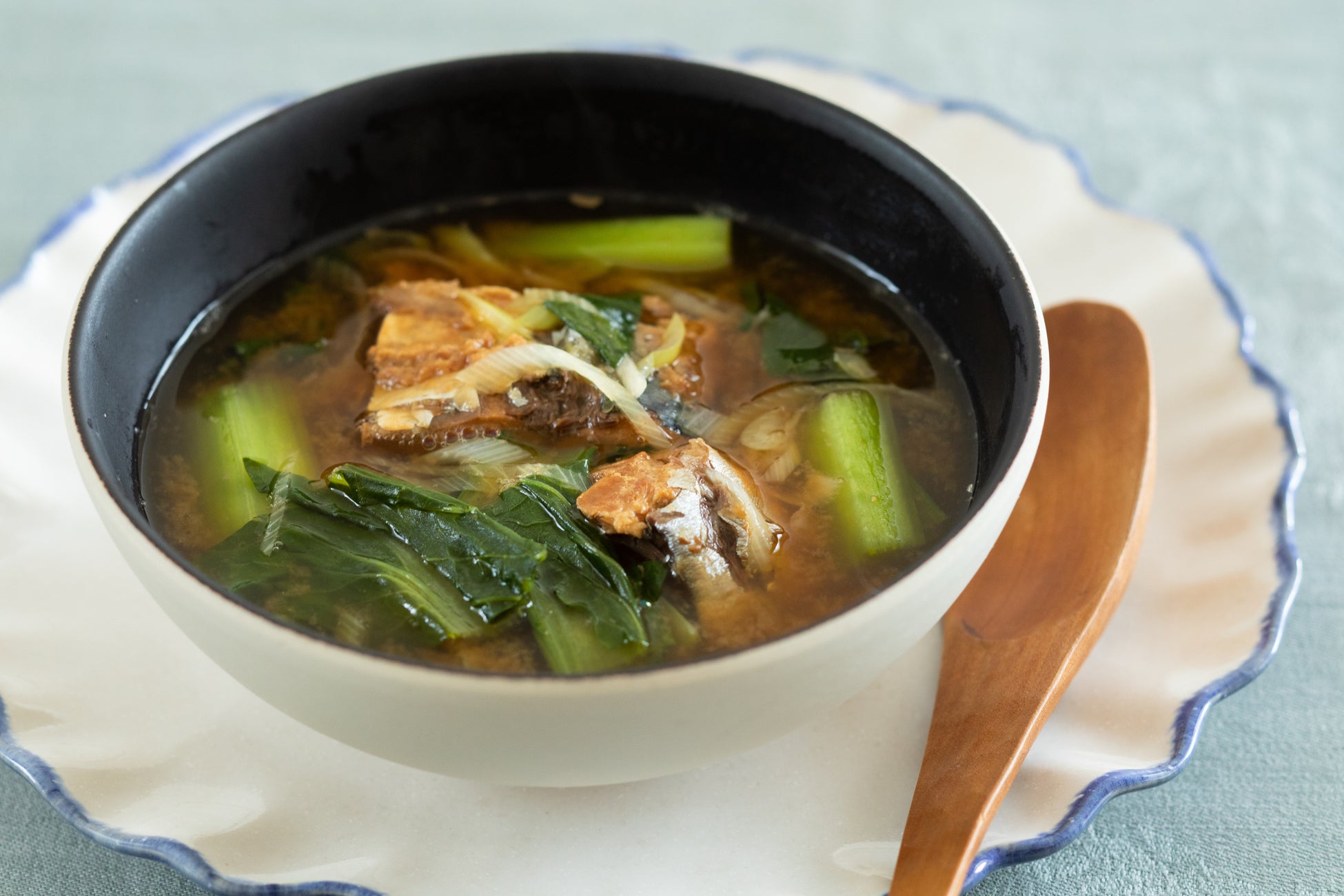 ■小松菜とさばみそ缶のしょうがスープ