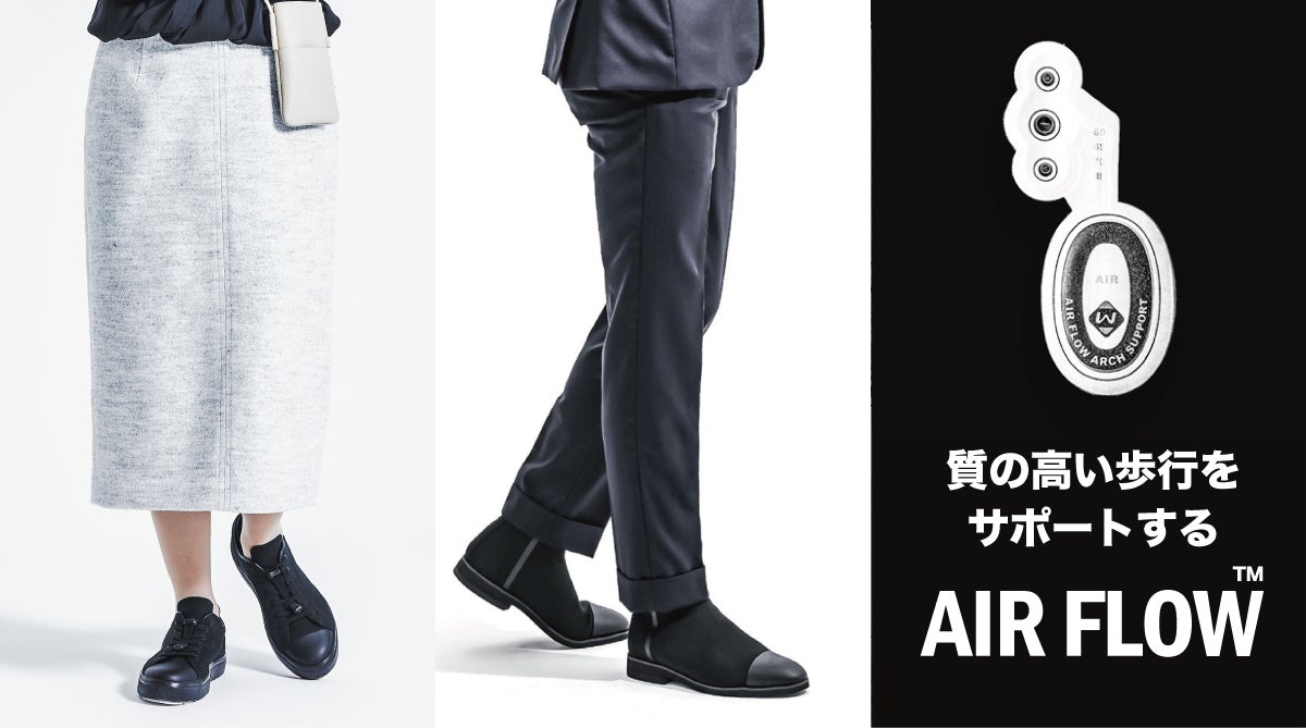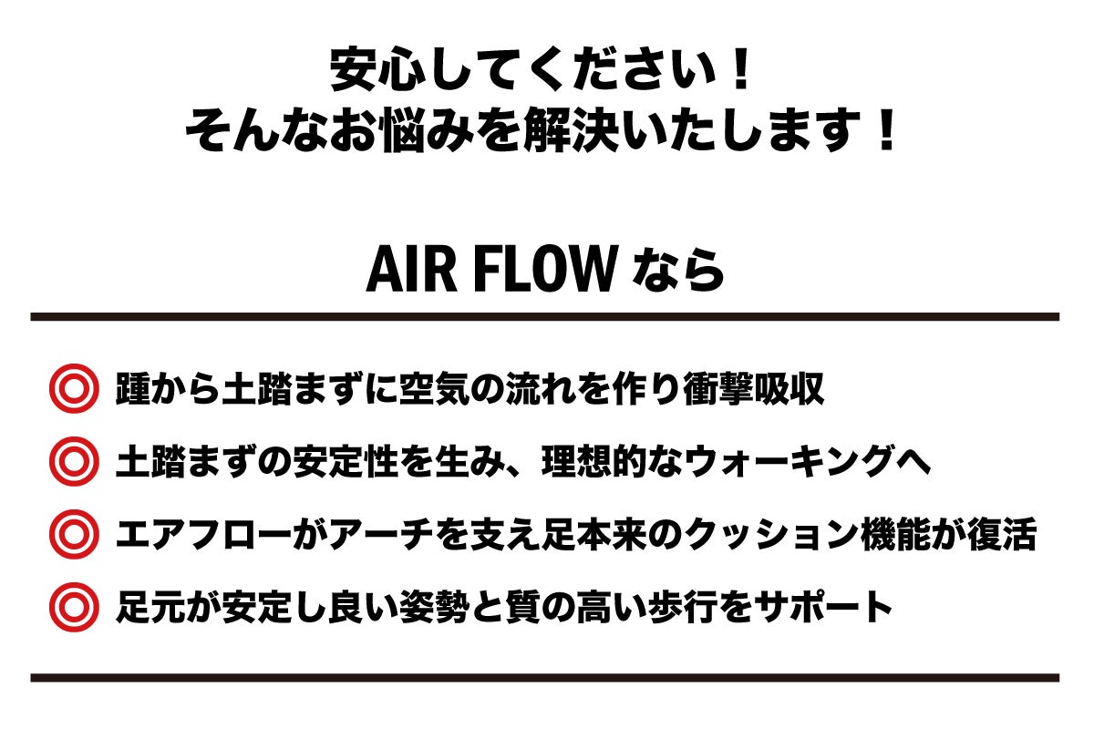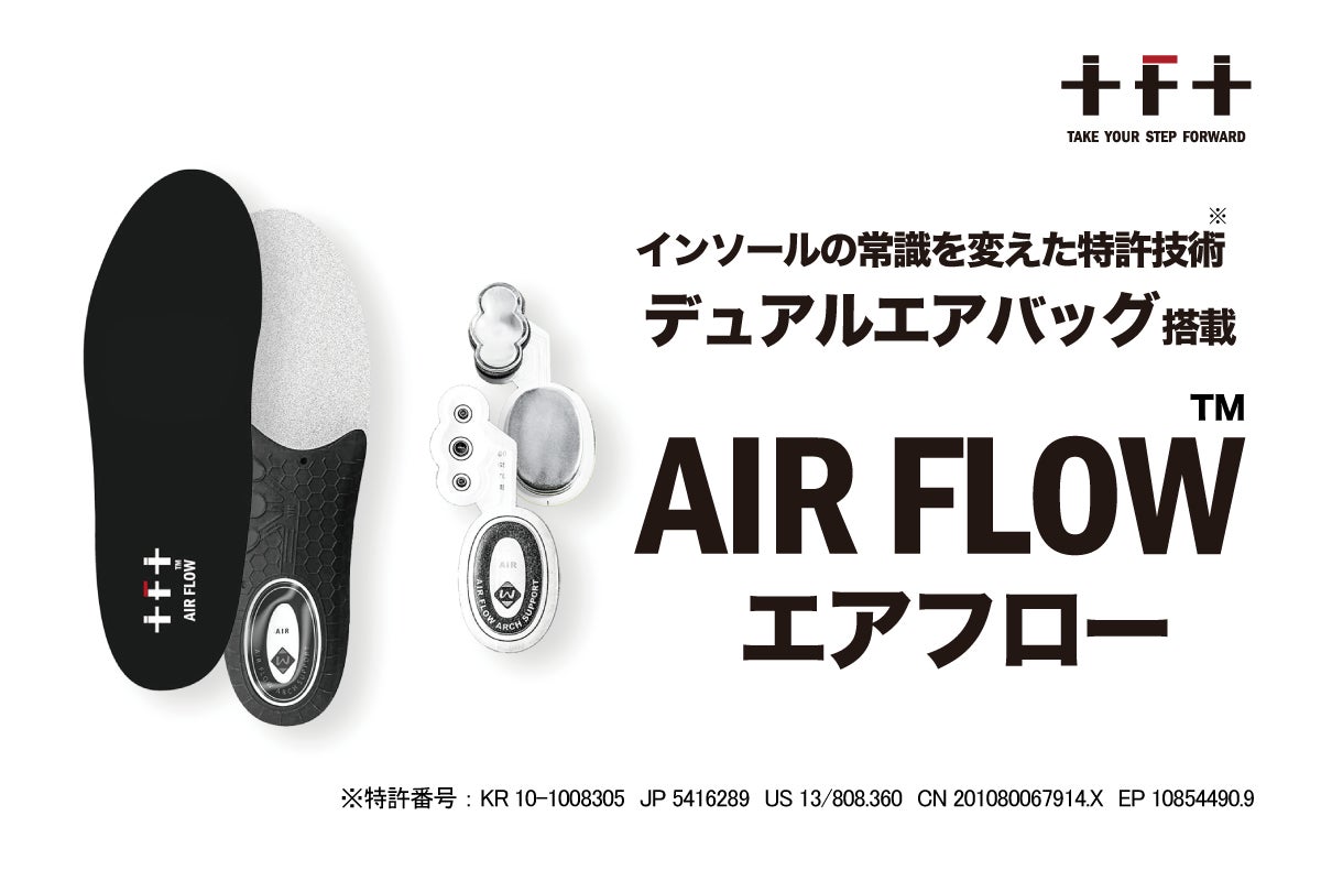 世界4ヵ国で人気沸騰の特許技術インソール『AIR FLOW』で、ストレスのない健康な毎日を。