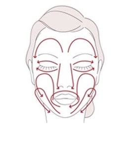 ● 朝晩の洗顔の後、指先に適量をとり、顔全体にマッサージするようになじませます。最後にあご先からこめかみに向かって手をすべらせます。