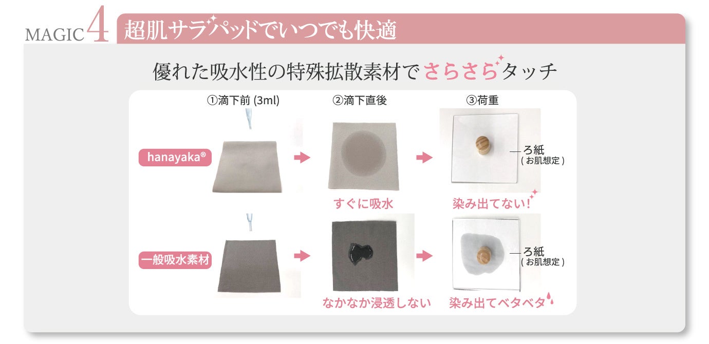 優れた吸水性・拡散性を持った素材を採用!さらさらタッチが持続しいつでも快適!