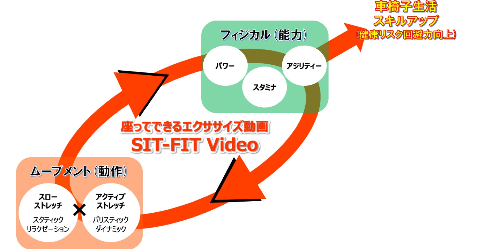 車椅子ユーザーの“生活スキル(健康リスク回避力)向上”をコンセプトに、ムーブメント(動作)・フィジカル(能力)両面をバランスよく強化することを基本理念としています。