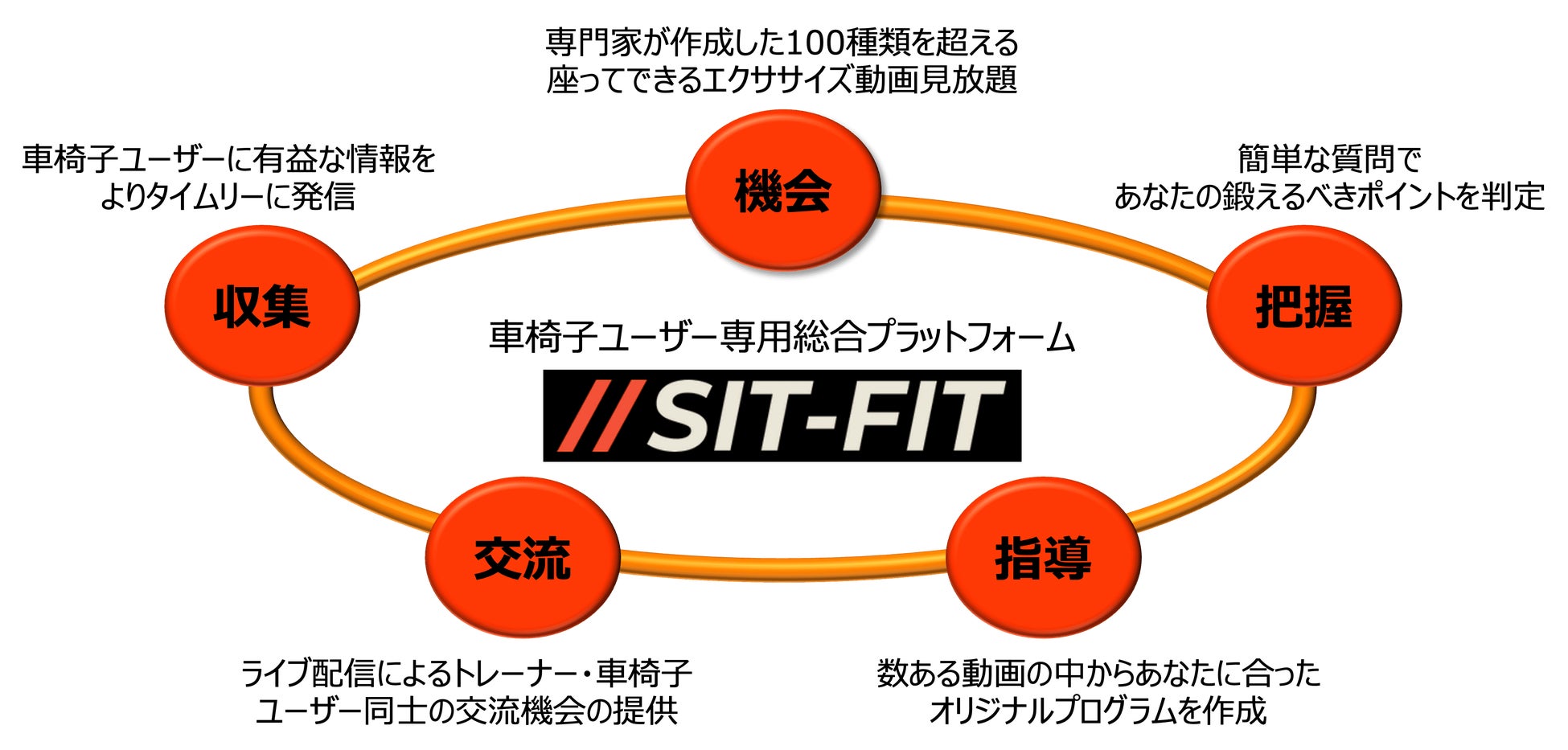 このような車椅子ユーザーを取り巻く課題の改善に寄与すべく、当該層への訪問パーソナルトレーニングサービスを通じて長年培ってきた経験・ノウハウ・専門知識を駆使したオンラインプラットフォームサービス『SIT-FIT』を開発しました。