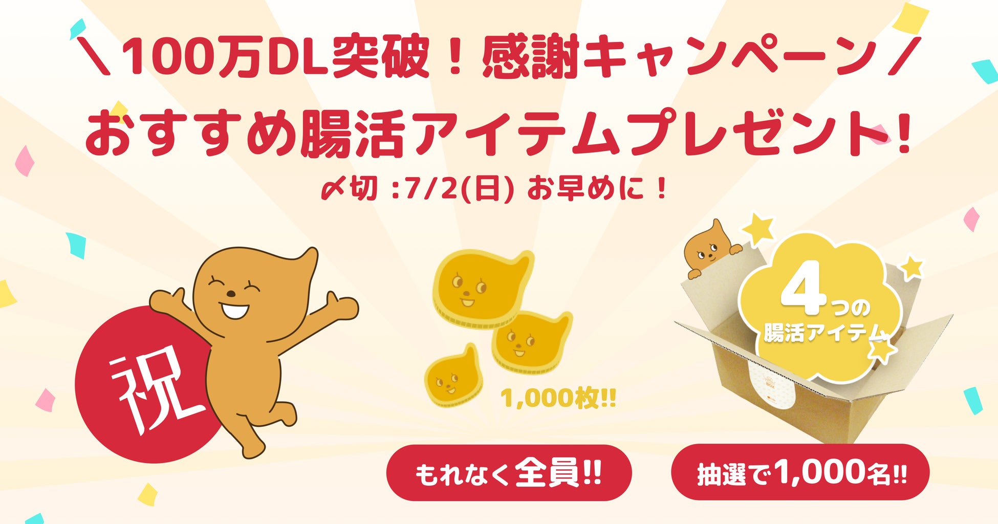 腸活サポートアプリ「ウンログ」が100万DLを突破!豪華商品が当たるキャンペーンを6月26日よりスタート