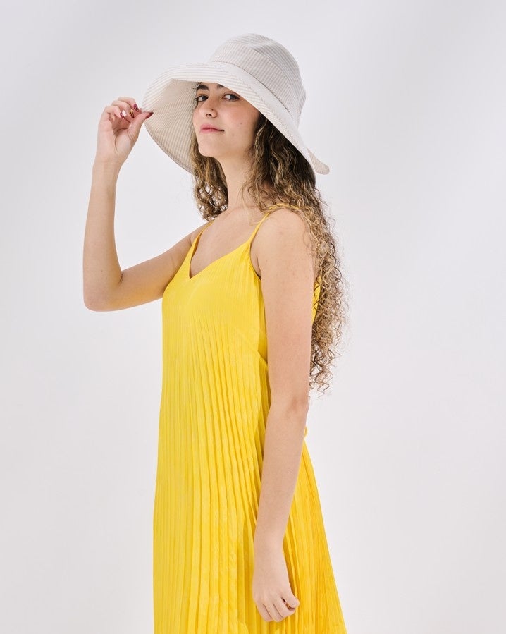 UVカットジャストフィットハットの夏用生地は、ストライプのサッカー生地。