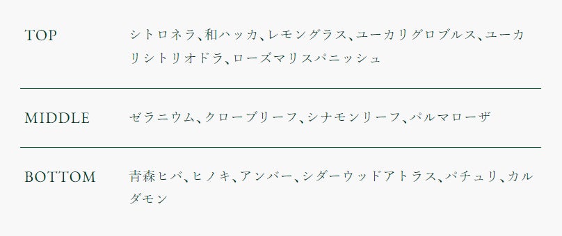 シトロネラを中心に虫の苦手なすっきり系の香りを中心としつつ、ふと深呼吸したくなるような奥行きのある香りに仕上げました。