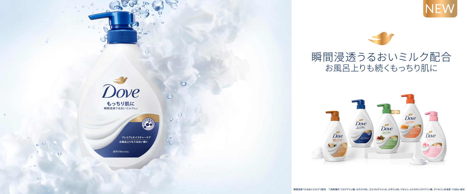 人気シリーズの「ダヴ ボディウォッシュ」を3年ぶりにトータルリニューアル! 瞬間浸透※1うるおいミルク配合で、お風呂上りもうるおいが続く“もっちり肌”に