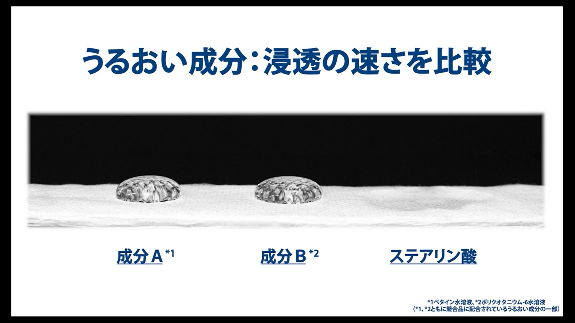 瞬間浸透*1うるおいミルク*2配合 *1角質層内 *2ステアリン酸、セラミドNG、ココイルグリシンK、ビタミンB3、ワセリン、ヒドロキシステアリン酸、グリセリン水溶液:うるおい成分