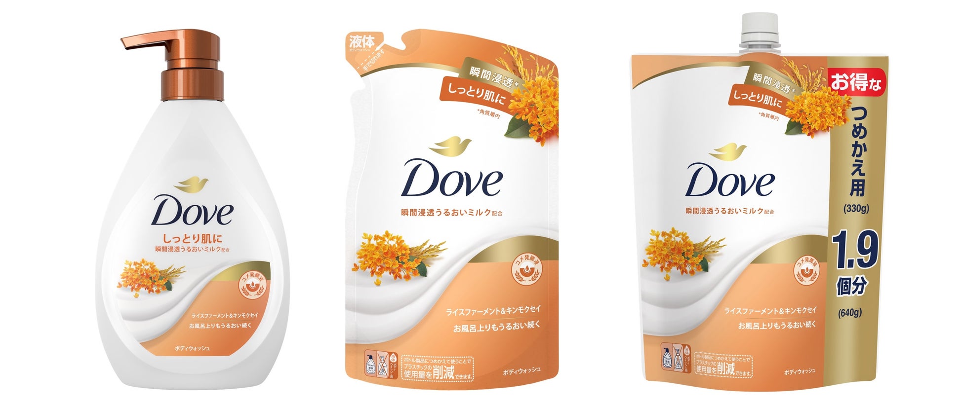 昨年発売以来、ご好評をいただいている「ダヴ ボディウォッシュ ライスファーメント&キンモクセイ」は香りも新しくなって新登場。従来品よりも、よりキンモクセイ本来の香りをお楽しみいただけます。さらに、コメ発酵液※3も配合し、洗いあがりもしっとりとした肌へと導きます。甘く広がるキンモクセイの香り(香料配合)に包まれながら、癒しのお風呂時間を体験してみませんか。