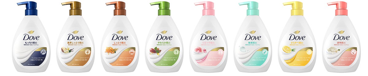 「ダヴ ボディウォッシュ」シリーズには、様々な肌ニーズに対応した全8種類のバリアントがラインナップ。また、通常サイズのつめかえに加え、大型サイズのつめかえをご用意しました。(グレープフルーツ&レモングラス、ホワイトクレイ&ガーデニアを除く)自分の好みやなりたい肌に合わせて選んだボディウォッシュで、毎日のボディケアをお楽しみください。