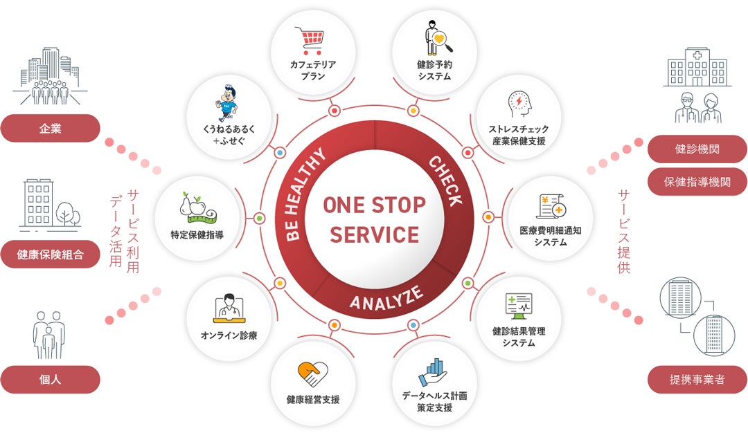 当社は今後も、効果的な保健事業の実践に取り組む健康保険組合、健康経営を推進する企業を支援し、「健康情報のデジタル化と健康管理のインフラ企業」として、一人ひとりの健康寿命の延伸、健康増進に貢献する様々なサービスの提供に取り組んでまいります。