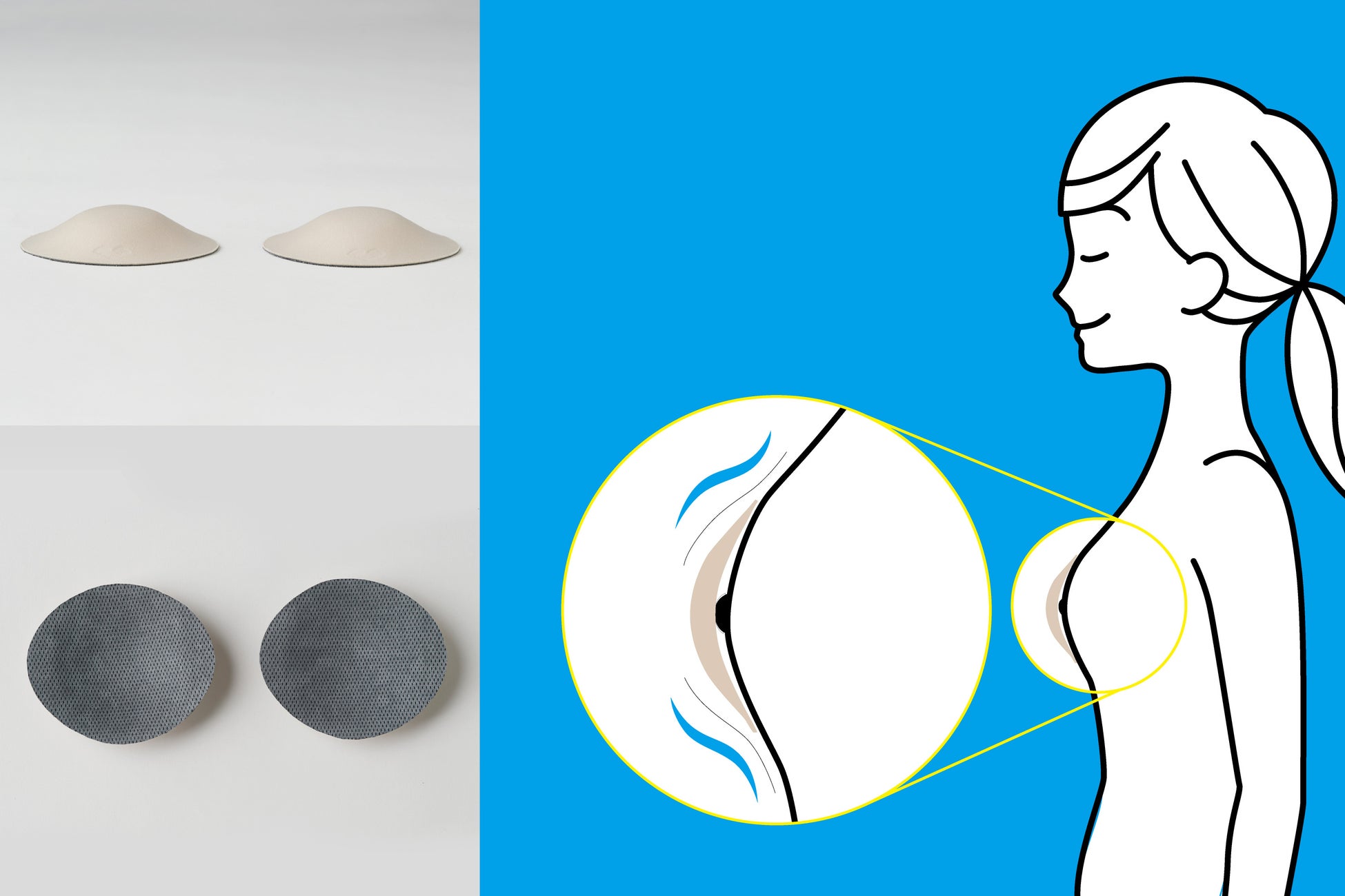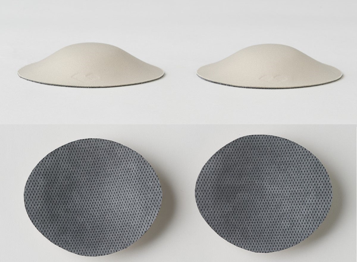 丸みをもち、裾が広がるような帽子型形状にすることで、様々な胸の形にフィットし、不自然なシワや凹みが生じにくく見た目もなめらかです。また肌との境目も段差が少なくスムーズなので、表にラインが響きにくくなっています。