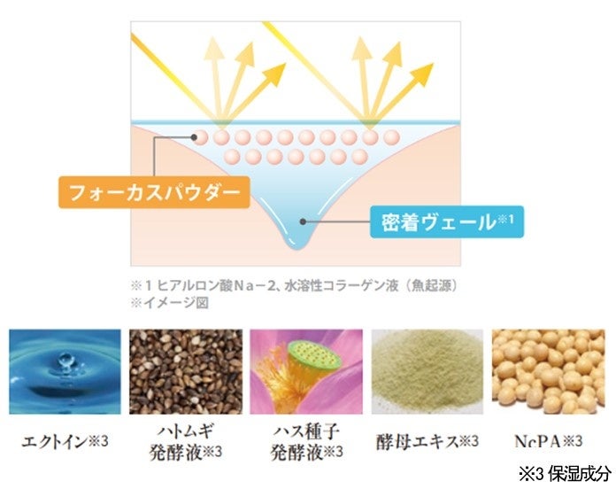 さらに、光を乱反射するフォーカスパウダーを採用し、透明感のある肌※2を実現します。