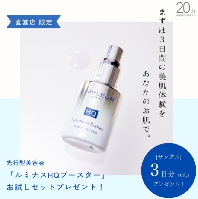 【直営店限定】「ルミナスHQブースター」3Days 美肌体験 サンプルプレゼント