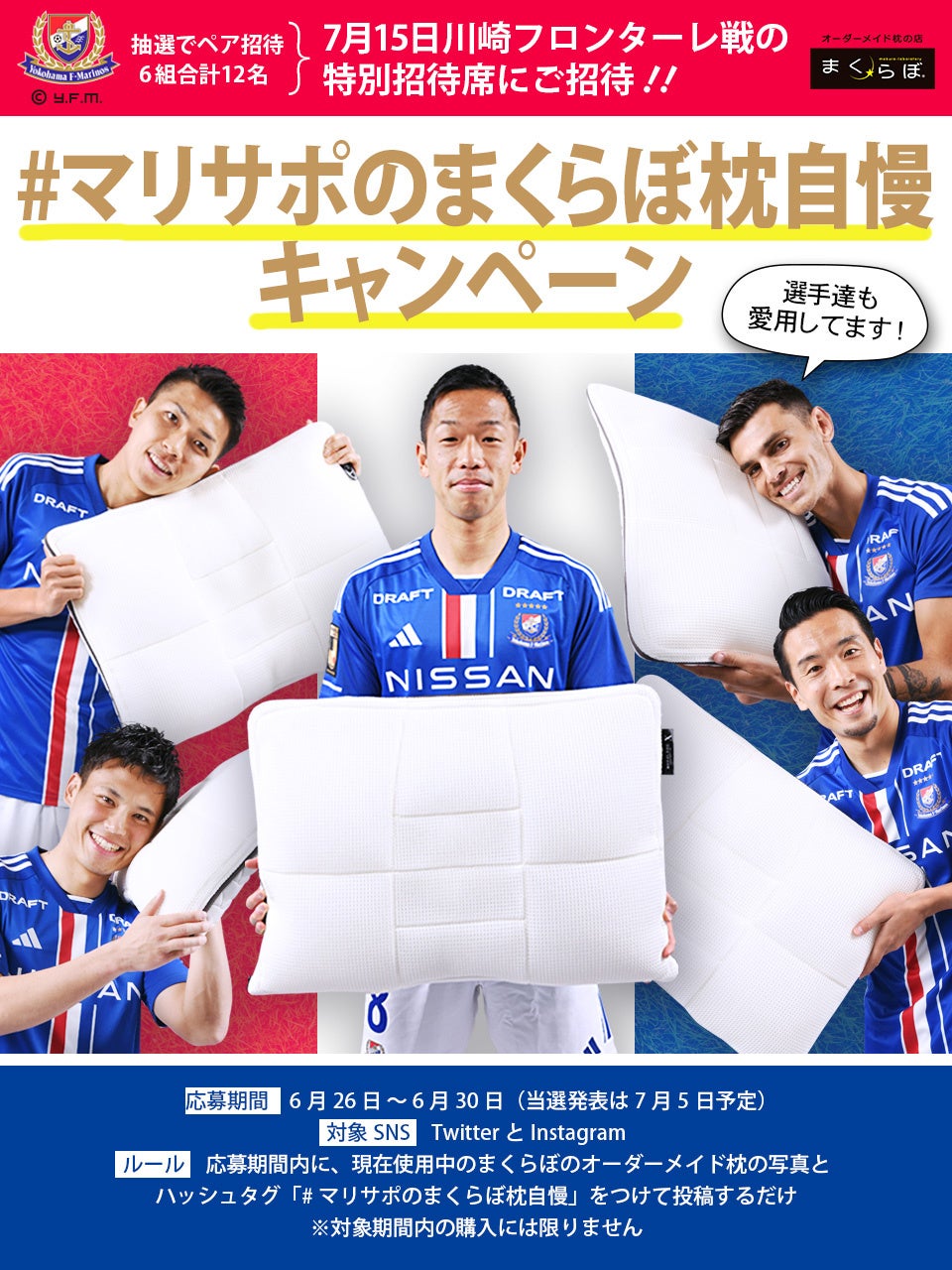 2023年6月26日(月)から6月30日(金)までの期間、いつも横浜F・マリノスを共に応援するファンやサポーターの皆さまに向けて、「#マリサポのまくらぼ枕自慢キャンペーン」をまくらぼ公式SNSrにて実施しています。