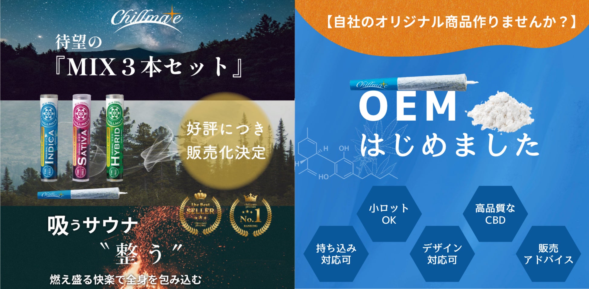 株式会社chillmateは、Amazonでベストセラーを獲得した経歴のあるCBDジョイントを、この度お客様からお声が大きかった3つの異なるフレーバーを組み合わせたMIX3本セットの発売を開始しました。