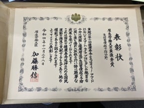 ※昨年度の厚生労働大臣/最優秀賞の表彰状
