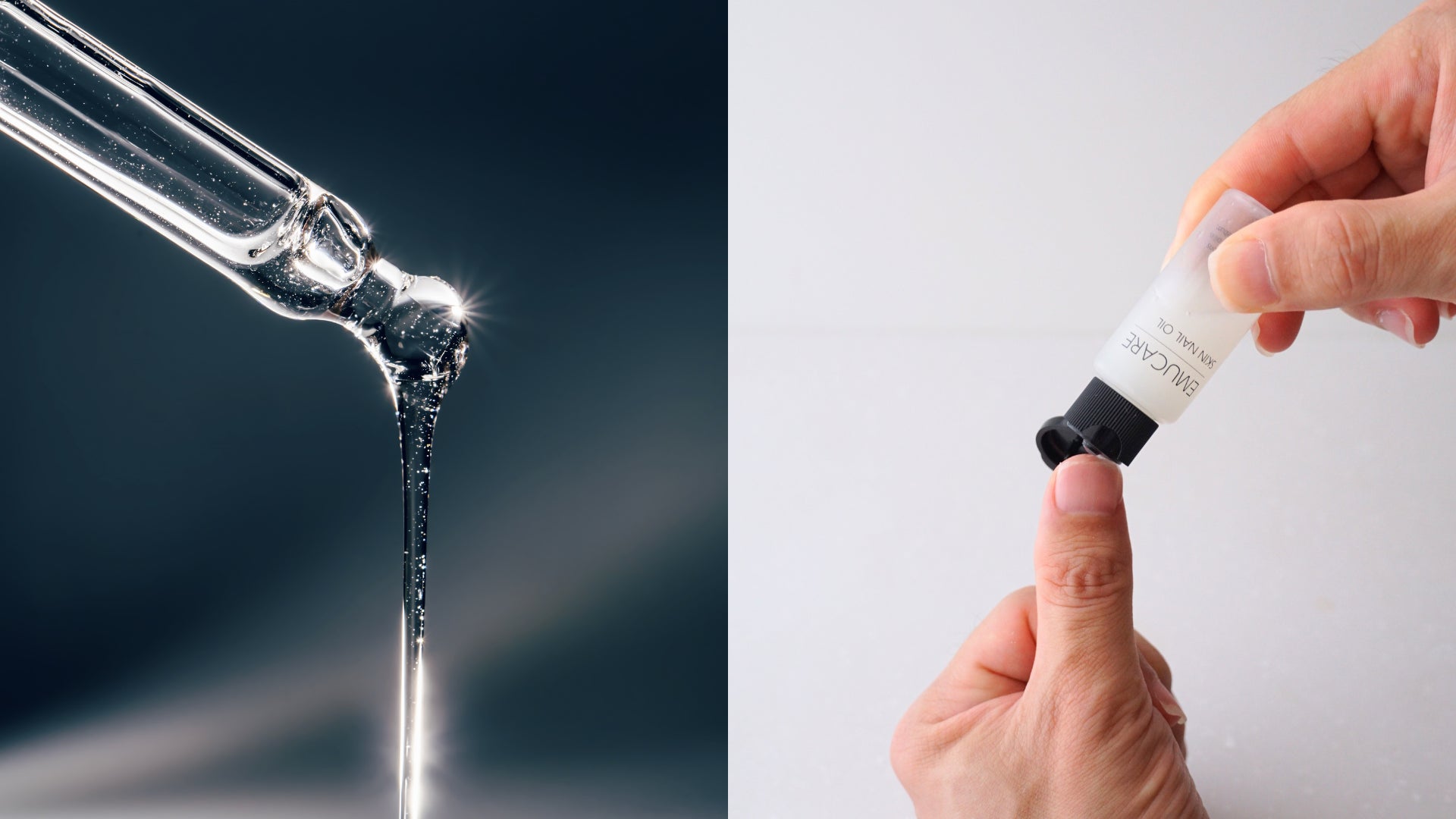 そこで「爪だけへのアプローチでは、爪のトラブルは解決しない」事実に着目し、肌も爪も1本で保湿ケアできるホームケア商品「EMUCARE(エミュケア) 肌爪オイル」を開発しました。