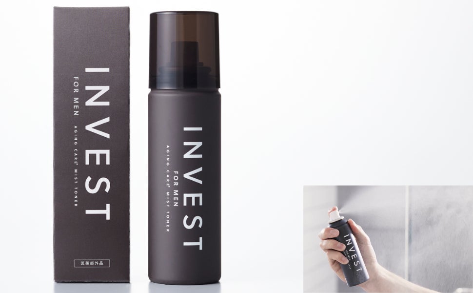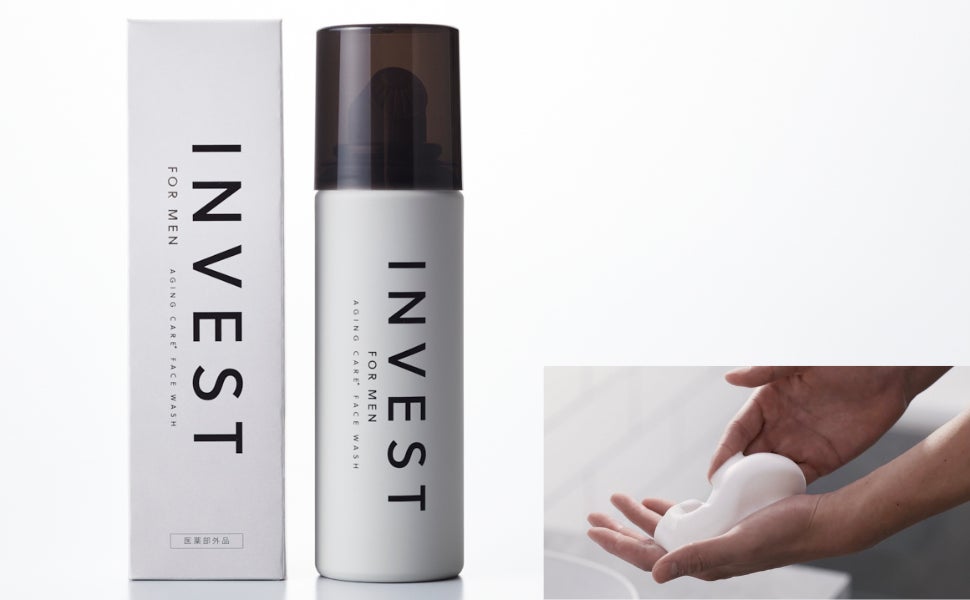INVESTは、洗顔とシェービングの2WAYで使える「濃密泡洗顔」、15,000ppmの炭酸微粒子ミストが広がり肌を整える「炭酸ミスト化粧水」がセットになっている商品です。 乾燥しやすくテカリやすい男性特有の肌質に着目し、医薬部外品の商品として3年もの期間を経て開発しました。 泡立てなくてもワンプッシュで濃密な泡が出る「濃密泡洗顔」は、肌への摩擦を抑えながら余分な皮脂汚れだけを浮かせて落とすため、 過剰な皮脂分泌を防ぎます。 そのままシェービングとしても利用でき、濃密泡がカミソリ負けを防ぎます。 「炭酸ミスト化粧水」は直接顔にひと吹きするだけのミスト化粧水なので、顔に手を触れず清潔な状態をキープ。 たったの2STEP60秒でスキンケアが完結するので、忙しい朝や仕事で疲れている夜に、面倒な手間や時間をかけず同時にスキンケアとエイジングケア※を叶えます。