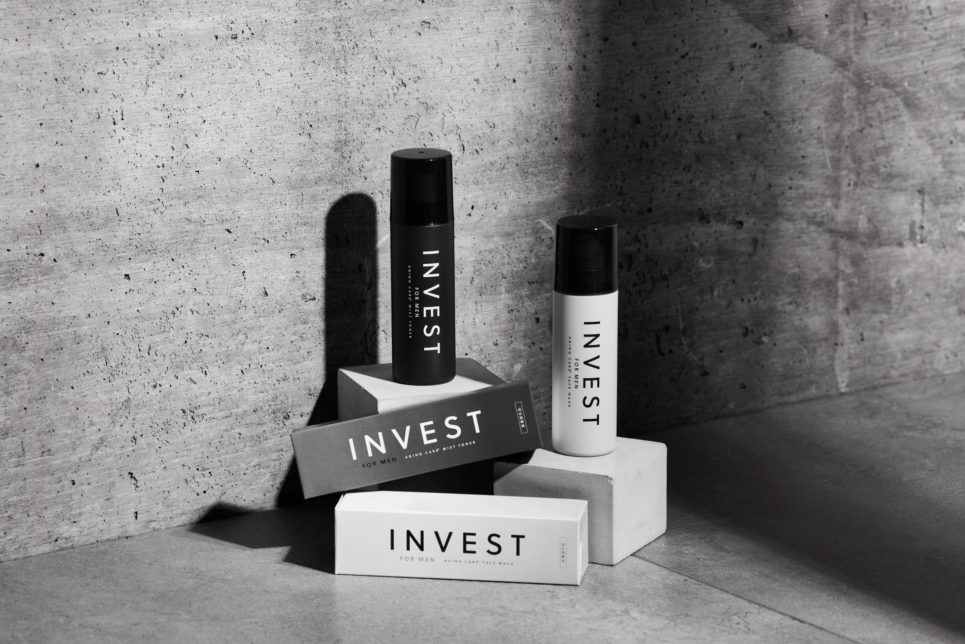 ブランドとして誕生した「INVEST」は、忙しい男性でも60秒でスキンケアができる商品の使いやすさはそのままに、よりエイジングケアにフォーカスしたブランドコンセプトに一新いたしました。
