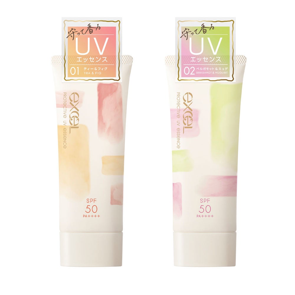写真左から:エクセル プロテクティブ UVエッセンス 01 (’23)・02 (’23)