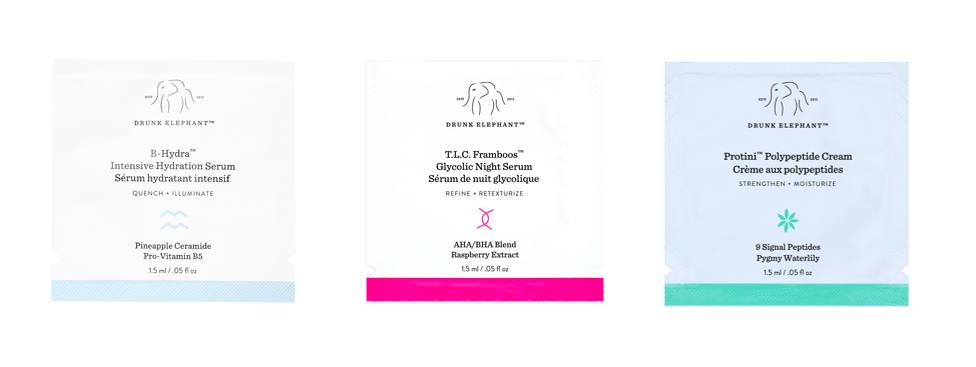 今回ドランク エレファントを一気に使い始めてみたい方や手持ちのスキンケアアイテムがなくなり新たに購入する方には、13,200円(税込)以上のご購入で「シーファーマ フレッシュ デイセラム」(4.5mL)と「バージンマルラ ラグジュアリー フェイシャルオイル」(5mL)の特製サイズセットをプレゼント。毎日のルーティンに取り入れて、夏を通してハッピースキンを手に入れよう。