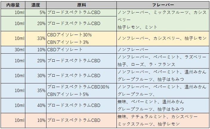 ホワイトラベル対応CBDオイル一覧(合計42SKU)