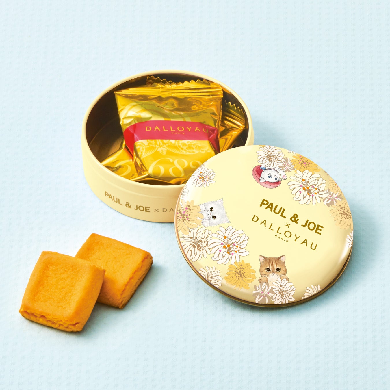 ※『ガトー ミャオ缶(イエロー)』、『ニャカロンラスク缶(ピンク)』、『ニャカロンラスク缶(グリーン)』、『サロン ド テ(缶入)オーガニック セイロンティー』、『PAUL & JOE × DALLOYAU 限定ショッパー』は、PAUL & JOE一部店舗、PAUL & JOE公式オンラインストアのほかダロワイヨ店舗、ダロワイヨ公式オンラインショップでも販売いたします。