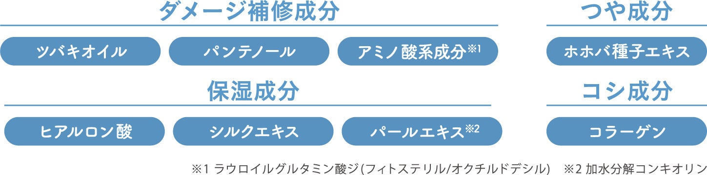 ダメージ補修成分・保湿成分・つや成分・コシ成分を配合