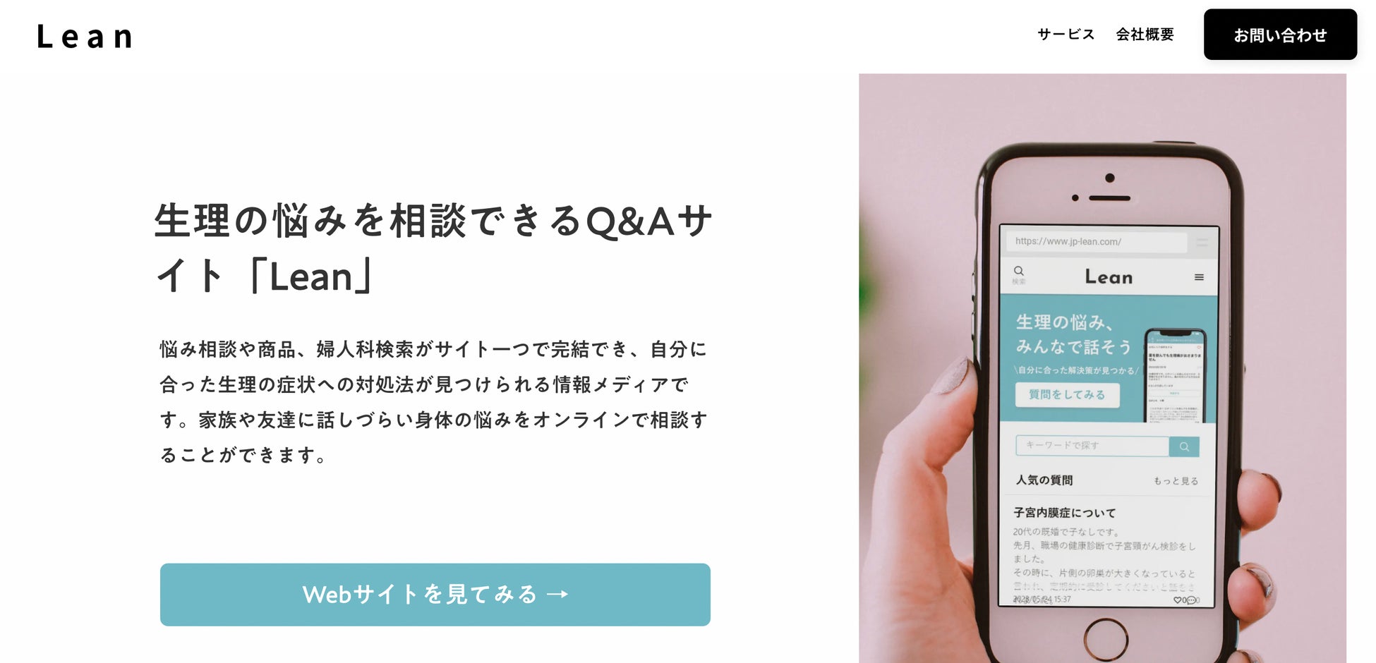 ・生理の悩みを相談できる情報メディア「Lean」(リーン)