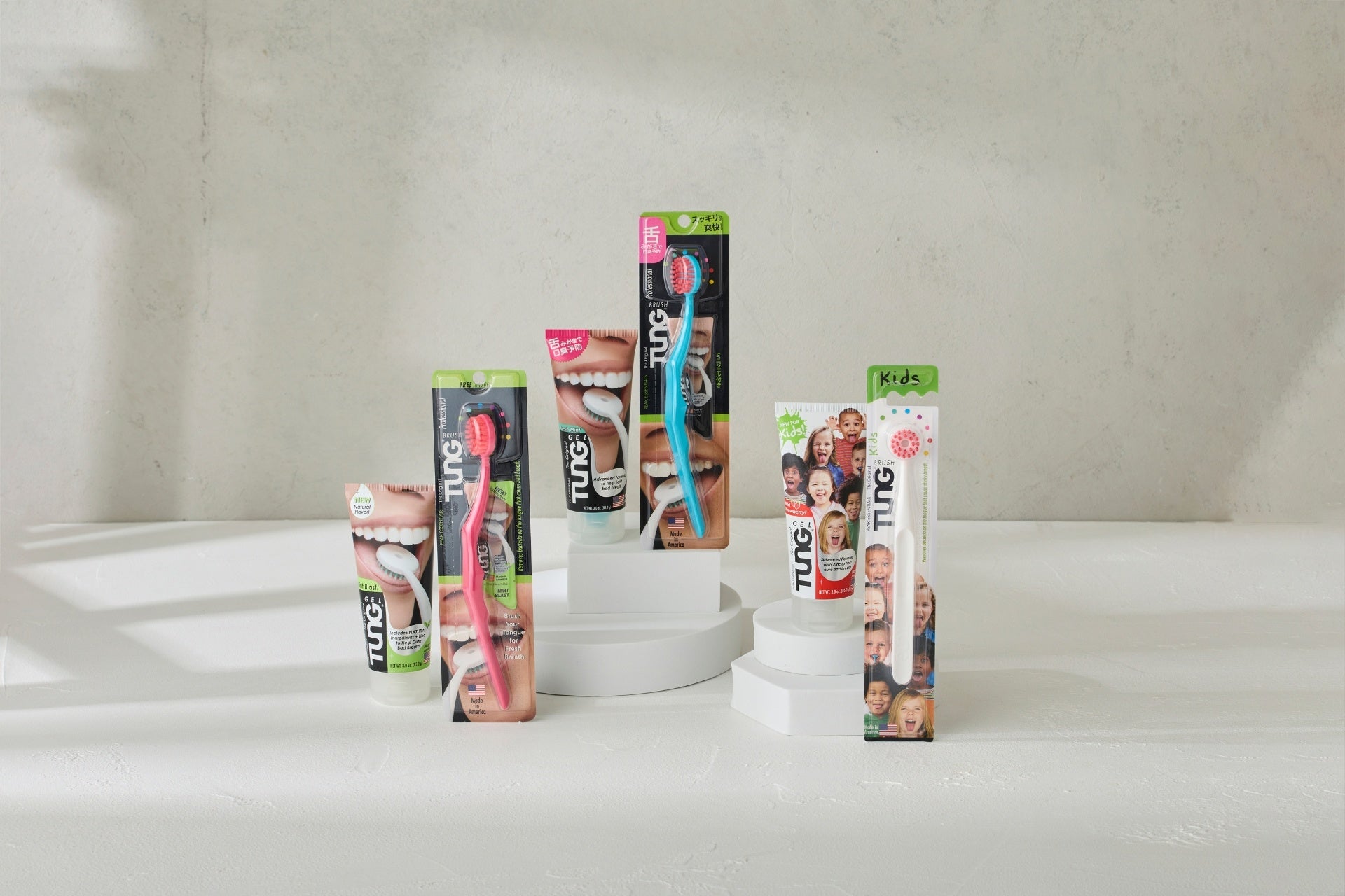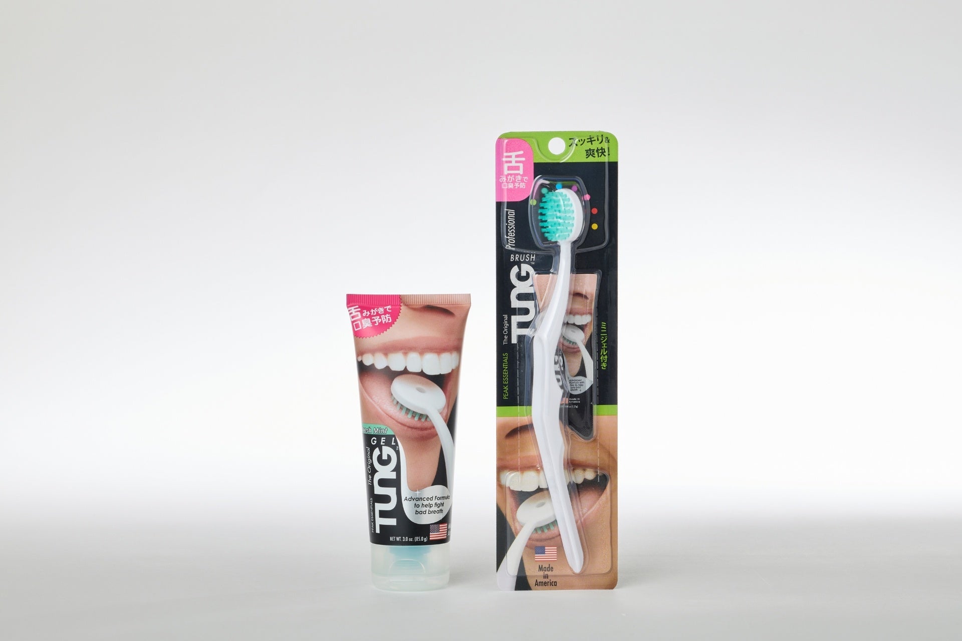 TUNG(タング)はオーラルケア先進国であるアメリカで誕生した舌ケア専用のブラシ・ジェルを扱うブランドです。口臭の原因となる舌の汚れを専用ジェルと専用ブラシでブラッシング。舌をきれいにし、口臭を予防します。