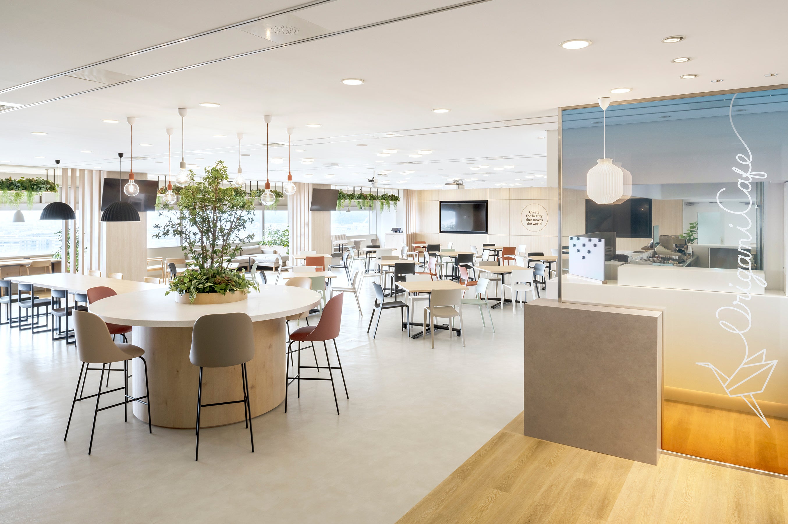 リニューアルプロジェクトの責任者であるキャンパスマネージャーのラファエル・シクセルは、「オリガミ・カフェのデザインを一新することで、チーム間のコラボレーションを促進するため、美しさにあふれた空間を作り上げました」とコメントしています。