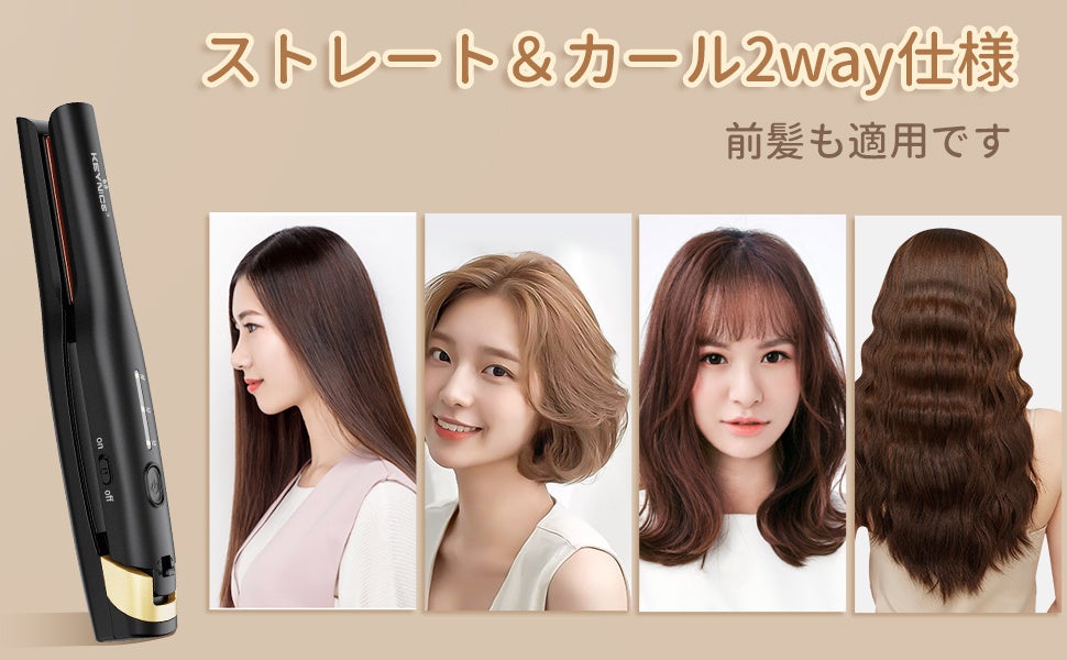 多機能コードレスヘアアイロン、ストレート&カール2way対応でき、約30秒で使用可能な温度(約120℃)に到達し、朝起きて乱れている髪型にとって、良い手伝いです。