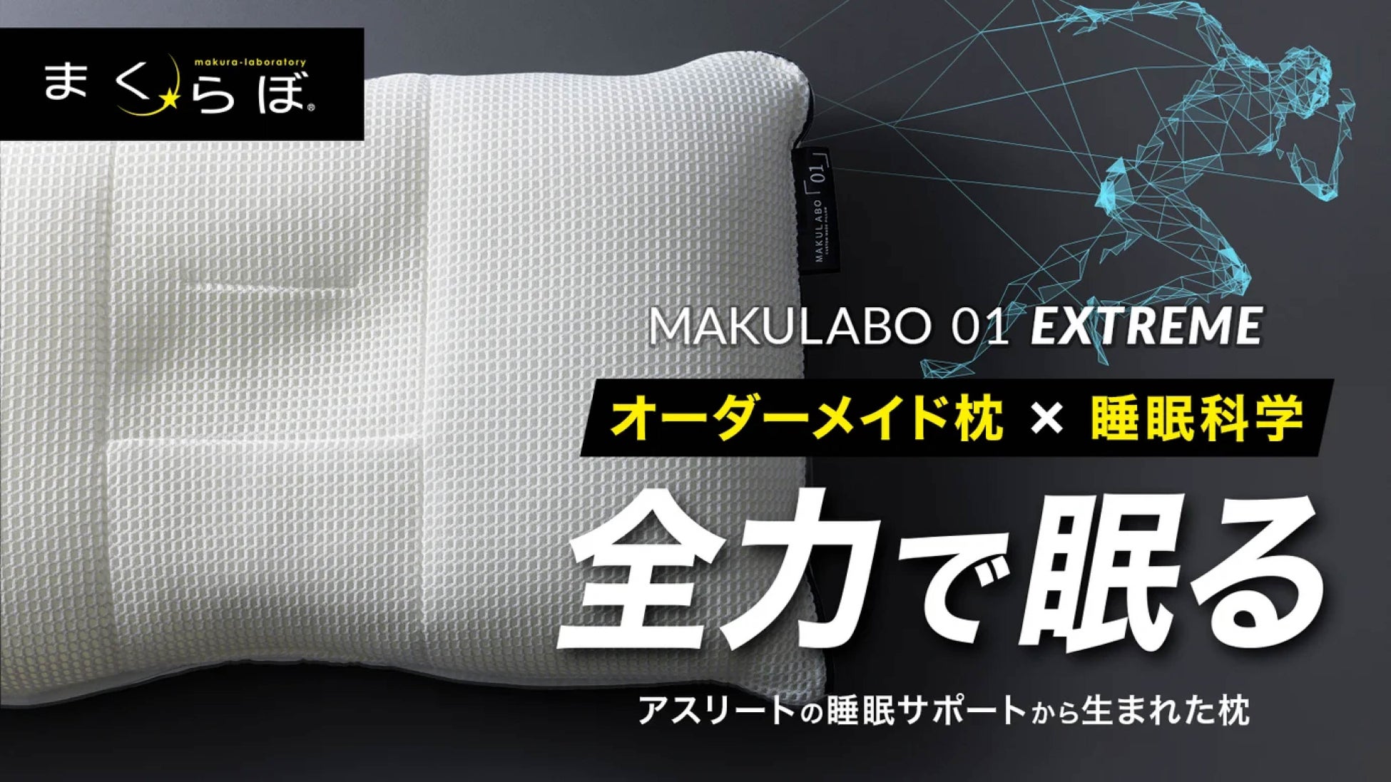 まくらぼは、プロアスリートの睡眠サポートから生まれた枕「MAKULABO 01 EXTREME(まくらぼ ゼロワン エクストリーム)」を2023年6月6日(火)11:00から7月10日(月)まで応援購入サイトMakuakeにて販売しております。