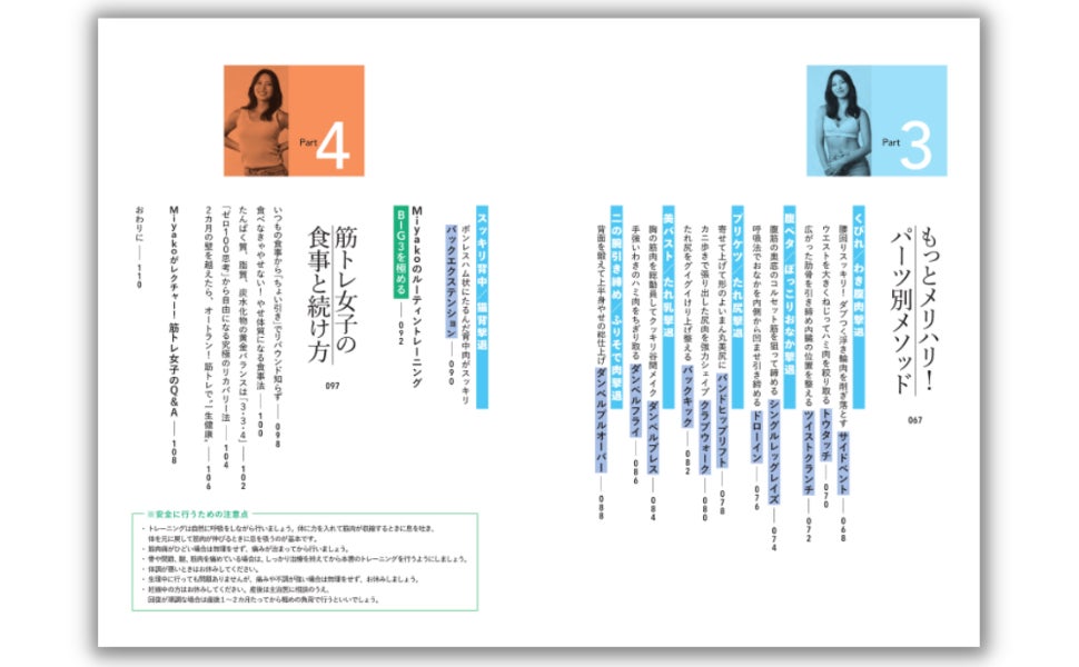 ▼「Miyakoのルーティントレーニング」「筋トレ女子の食事の続け方」「筋トレ女子のQ&A」も掲載!