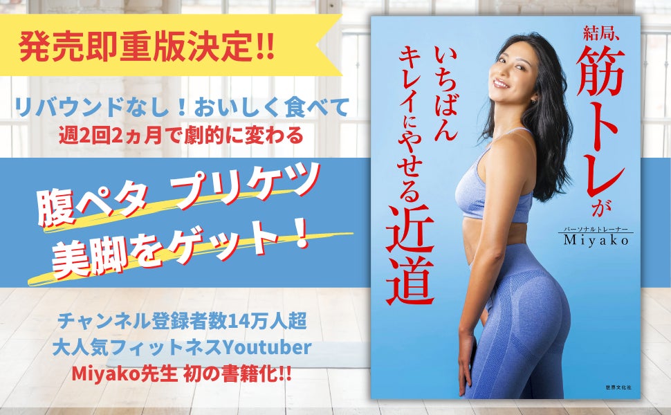 世界文化社は、Youtubeで大人気のパーソナルトレーナー・Miyako先生による初の書籍『結局、筋トレがいちばんキレイにやせる近道』を好評につき、発売1週間での重版を決定しました。