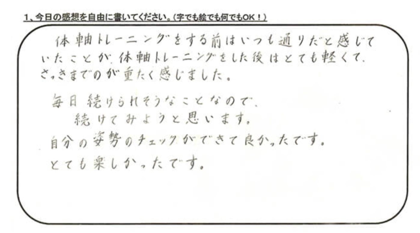 内容:体軸スクールについて/体軸スクール店舗運営の説明/トレーナー教育プログラムの紹介/フランチャイズ加盟について/質疑応答 など