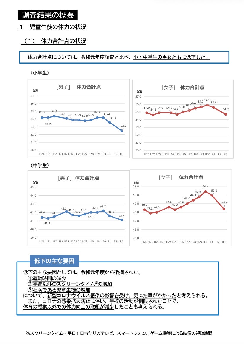 <出典:スポーツ庁:令和3年度 全国体力・運動能力、運動習慣等調査の結果(概要)>