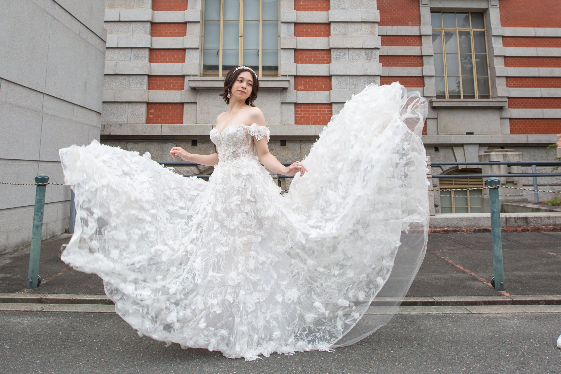 結婚式を挙げておらず、ウエディングドレスを着ていないとのことだったので今回の企画に相応しいと思い選定させていただきました。