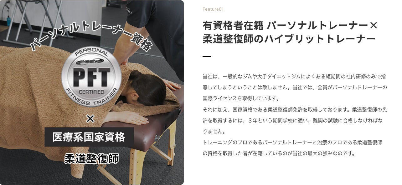 •有資格者在籍 パーソナルトレーナー×柔道整復師のハイブリットトレーナー