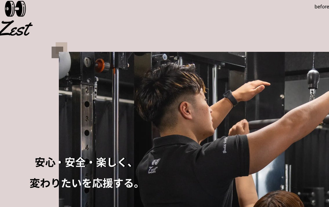 パーソナルジムゼスト(ZEST)ではお客様の「変わりたい」という気持ちに対し全力でサポートをしているジムです。